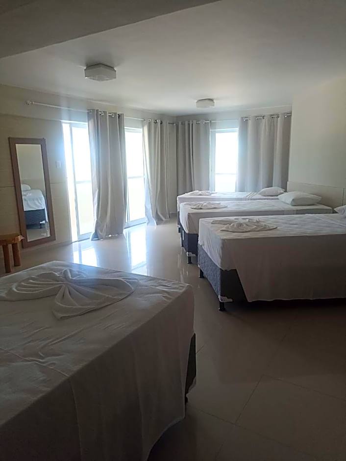 This quadruple room is air-conditioned and has a private bathroom, a mini-bar and sea views. The unit has 3 beds.